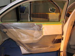 施工時には、汚れ、水分で悪影響を及ばさないように、きちんとマスキング(養生)します。